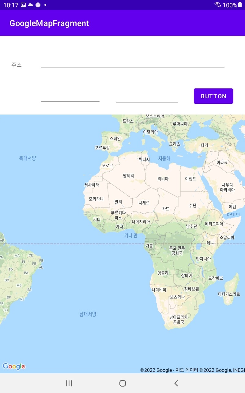 Kotlin 코틀린 안드로드 메인화면 Fragment에 구글 맵스 불러오고 주소 입력했을때 위도,경도로 변환하기 / 입력한 주소 메인화면 Fragment 구글맵스에 띄우기 본문