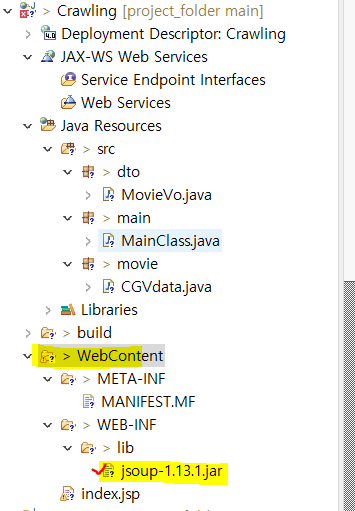 WebContent의 lib 파일에 다운받은 jsoup jar파일을 저장한다.