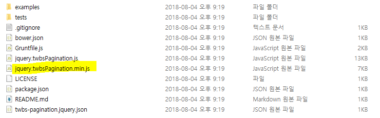 기능상 차이는 없으므로 jquery.twbsPagination.min.js를 사용할 것이다.