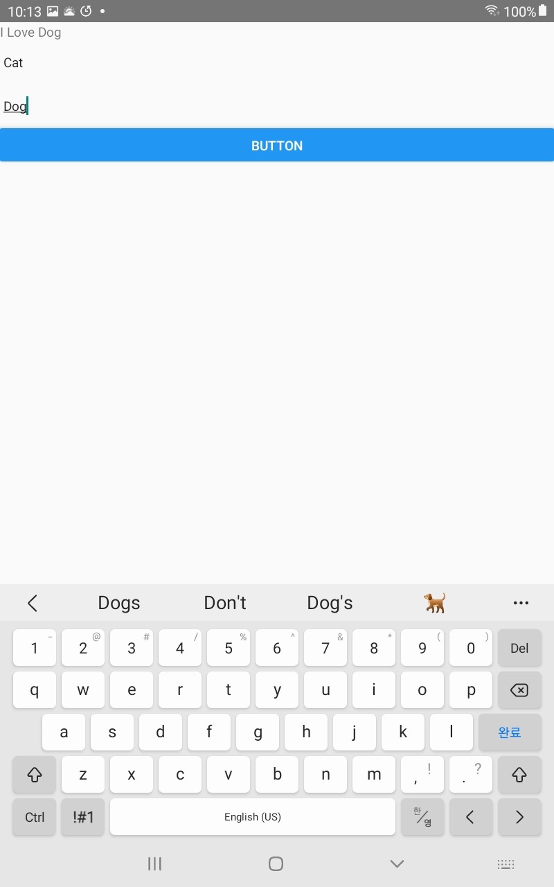 TextInput 란에 Cat과 Dog을 입력한후 Button을 누르면