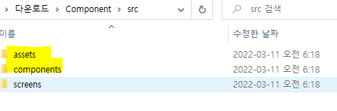 src 폴더 안에 있는 assets 폴더와 component 폴더를 복사한다.