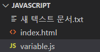 프로젝트 폴더에 자바스크립트 코드파일(variable.js) 외에도