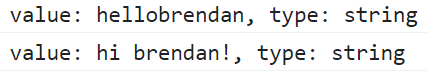 console.log(`value: ${helloBob}, type: ${typeof helloBob}`);