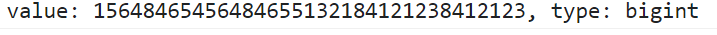 console.log(`value: ${bigInt}, type: ${typeof bigInt}`);