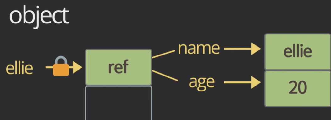 const ellie라고 선언한다음 object를 할당하게 되면 ellie가 가르키는 곳엔 ref가 있다.