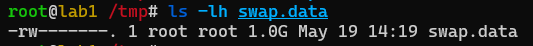 1. dd 명령어를 사용해서 크기가 1G 이고 개수가 1개인 swap.data 만들기