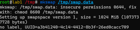 3. 생성된 swap.data 파일을 swap 으로 만들기(swap.data 파일은 /tmp 경로에 생성됨)