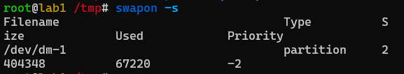 6. 활성화된 swap 을 swapoff 명령어로 중지하고, 중지 됐는지 확인