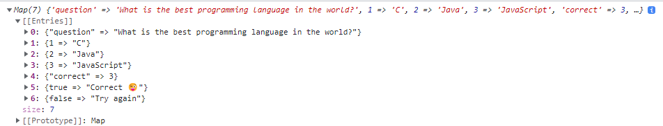 JavaScript / Map 과 스프레드 연산자 사용해서 간단한 Quiz앱 만들기 / Map을 Object 와 Array 배열로 변환하는 방법 본문