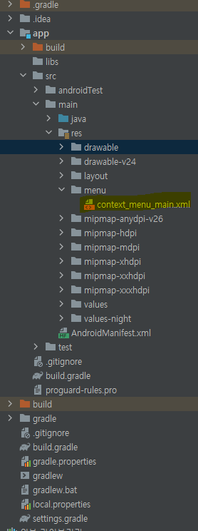 res/menu 폴더에 context_menu_main.xml 파일 생성