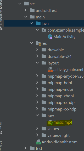 //resource 폴더 안 raw 폴더 안에 있는 music이라는 동영상 연결