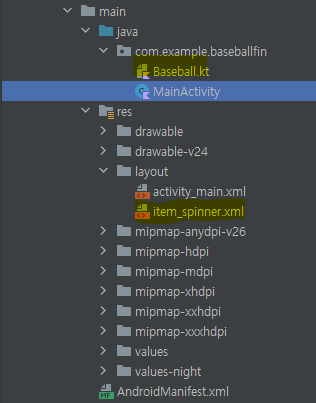 com.example.baseballfin 폴더에 Baseball.kt 생성