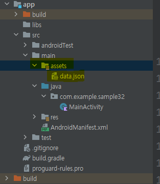 assets 폴더 우클릭 > 새로 만들기 > 파일 > data.json 파일 생성