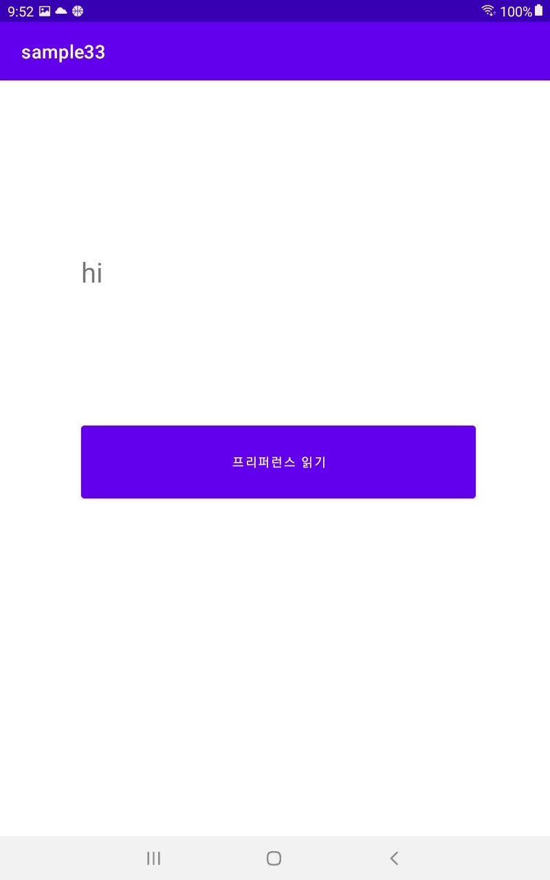 android:text="프리퍼런스 읽기"