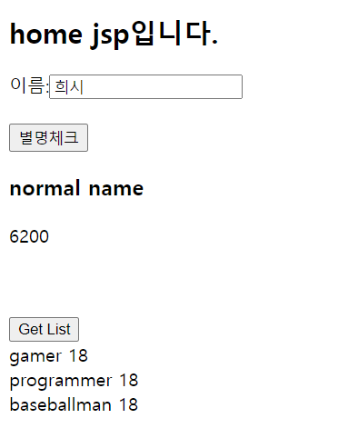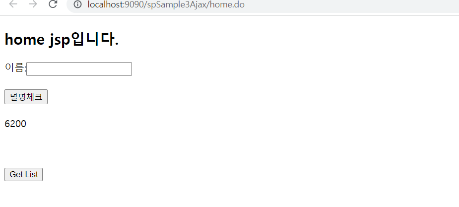 response.sendRedirect("home.do");에 따라 home으로 이동하면 아래와 같은 화면이 뜬다.