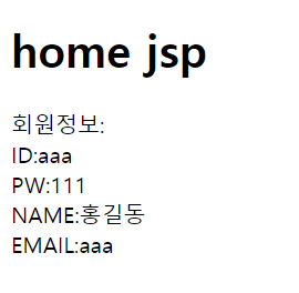 <ID에 aaa 입력하고 회원정보 입력했을시 보이는 Home.JSP화면>